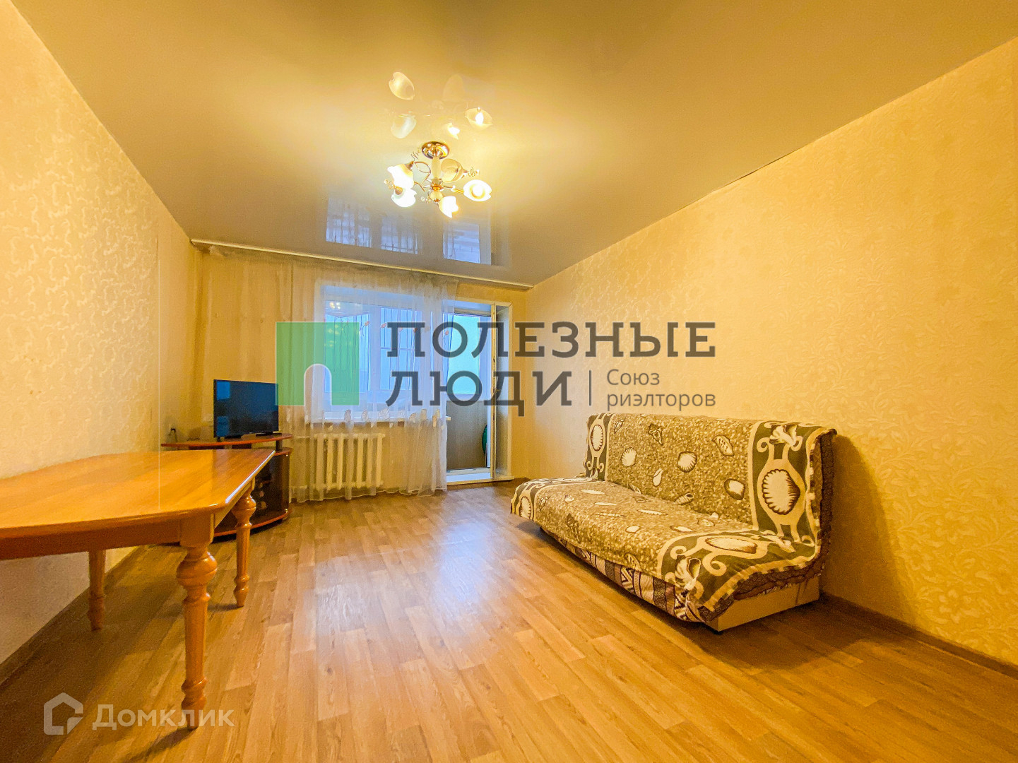 В гостиной телевизор, раскладывающийся диван, имеется рабочая зона, а также выход на лоджию;