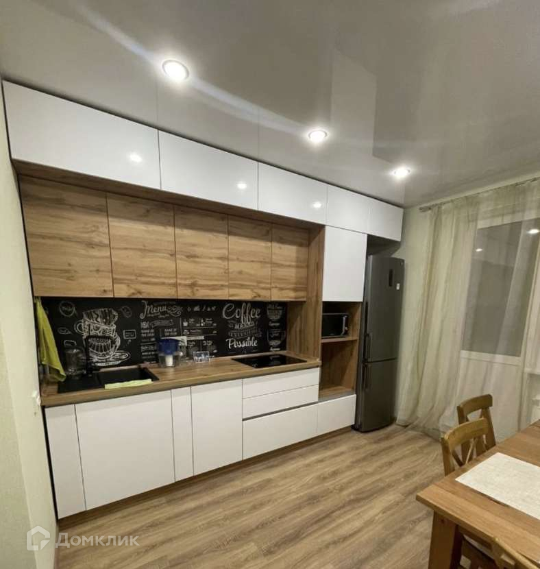 Кухня: 12м2, стол, 4 стула, индукционная плита, микроволновая печь, холодильник, духовой шкаф
