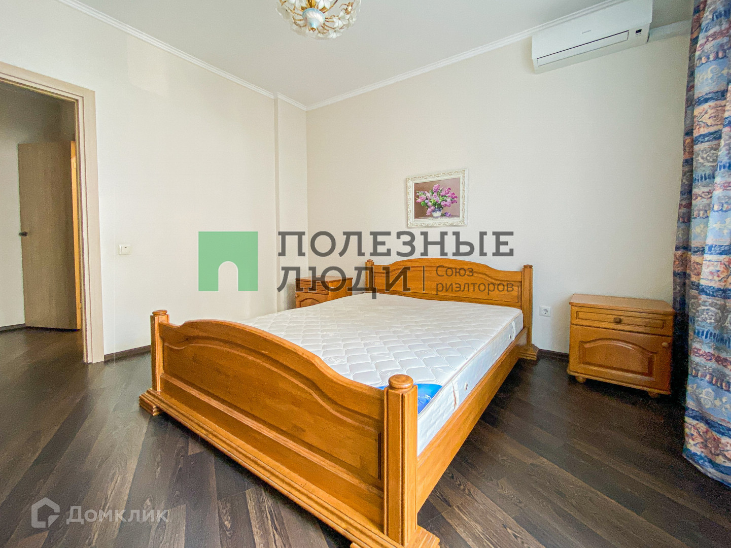 В спальне полноразмерная кровать с ортопедическим матрасом, шкаф, выход на лоджию;