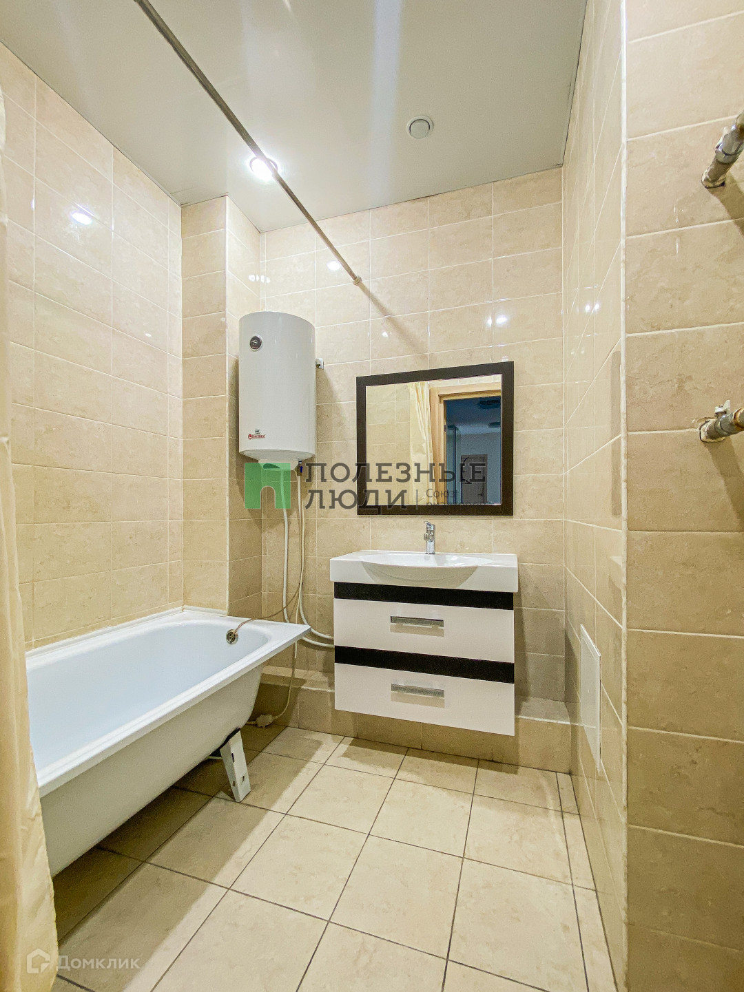Раздельный санузел с полноразмерной ванной, установлен водонагреватель;