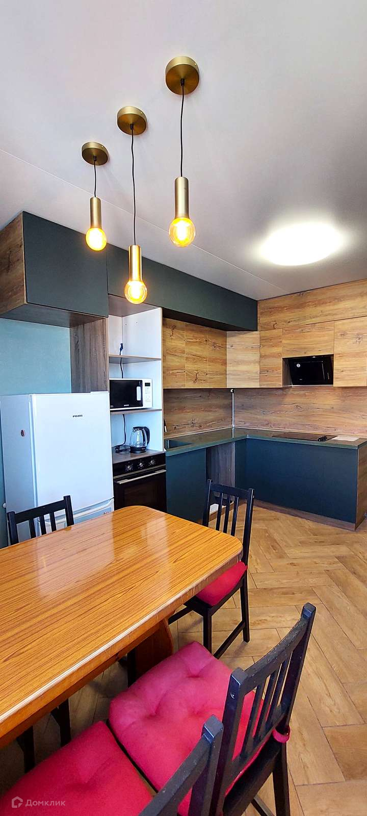 Квартира полностью укомплектована мебелью и техникой: кухонный гарнитур, холодильник, обеденная зона, микроволновка, вытяжка, варочная панель, духовой шкаф, стиральная машина, кровать, прикроватные тумбы. Имеется вместительная гардеробная.