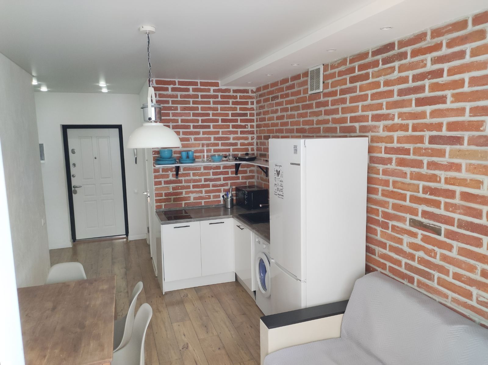 -кухня со встроенной техникой, обеденный стол и стулья;
