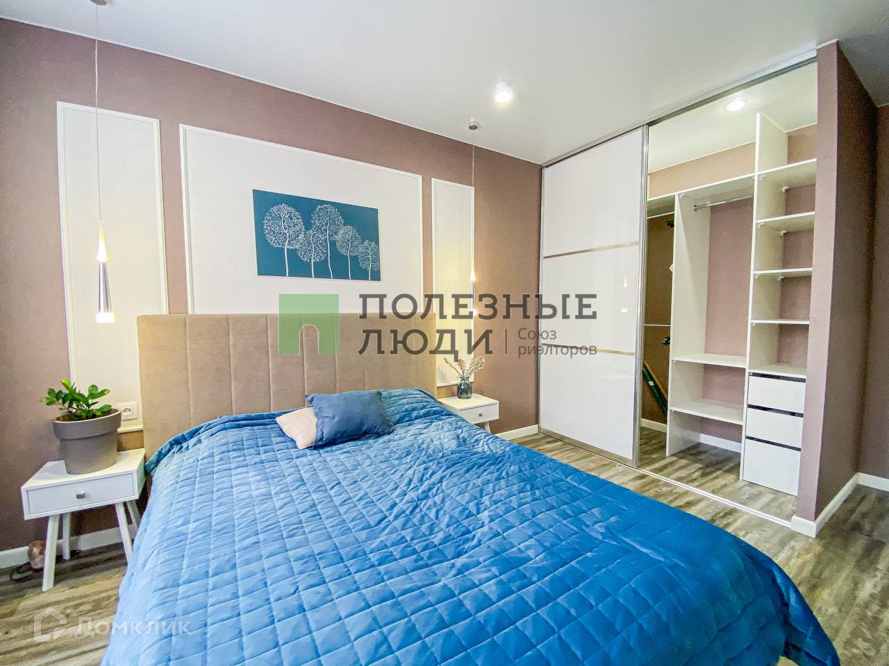 Спальня. Здесь есть двуспальная кровать с ортопедическим матрасом, комод для одежды.