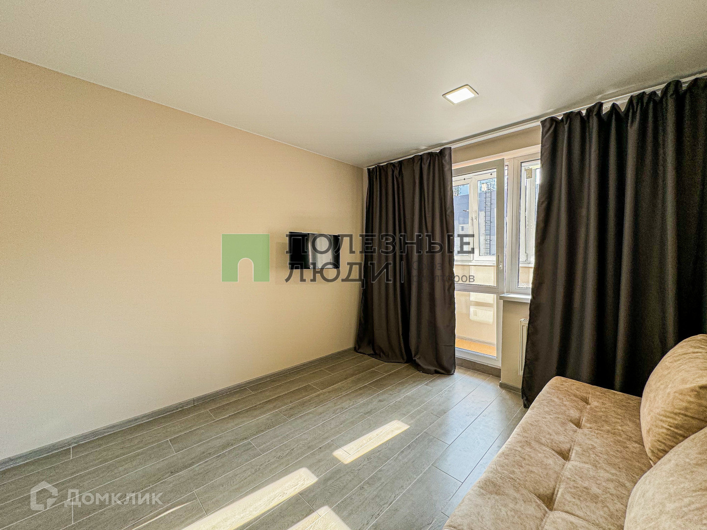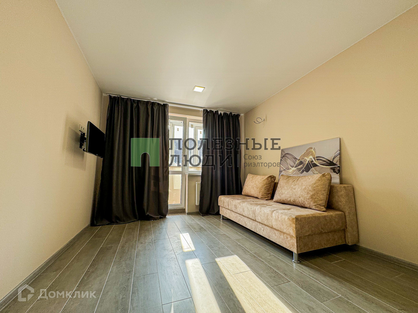 -Жилая зона с раскладывающимся двуспальным диваном, телевизором, Блэк аут шторами для крепкого сна.