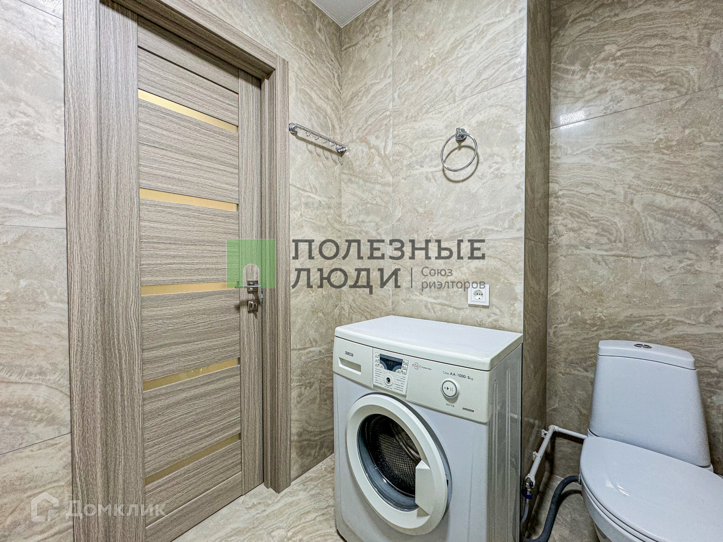 -Санузел совмещенный с ванной, раковиной, зеркалом, стиральной машиной.