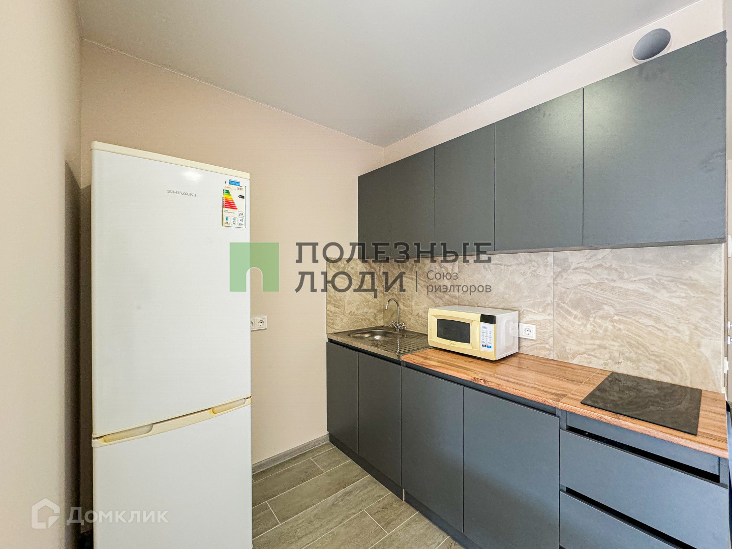 -Кухонная зона со всей необходимой техникой (Холодильник, электрическая плита, СВЧ-печь)