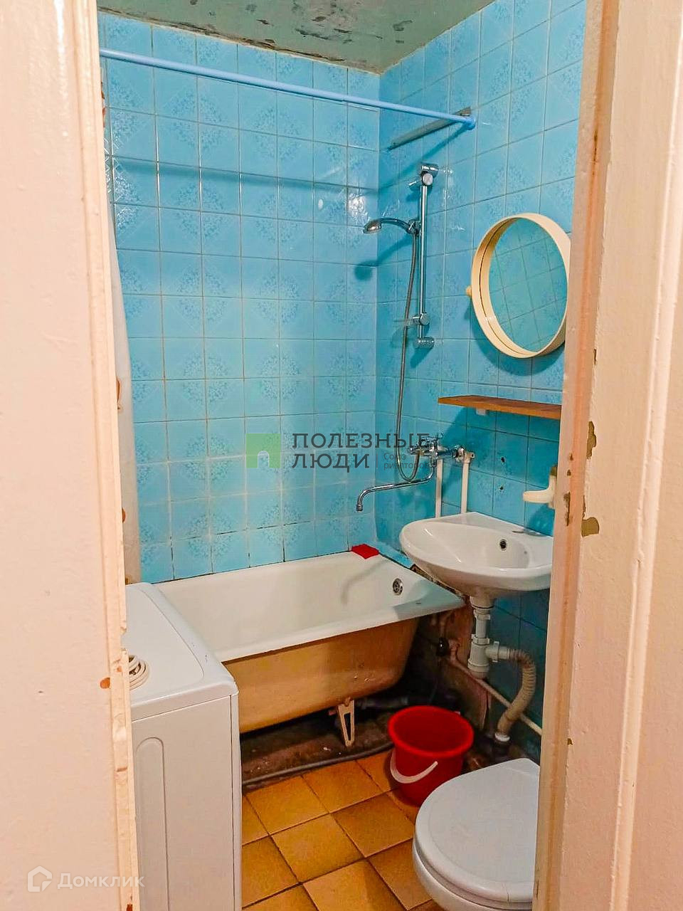 -Совмещенный санузел с ванной, раковиной и стиральной машиной.