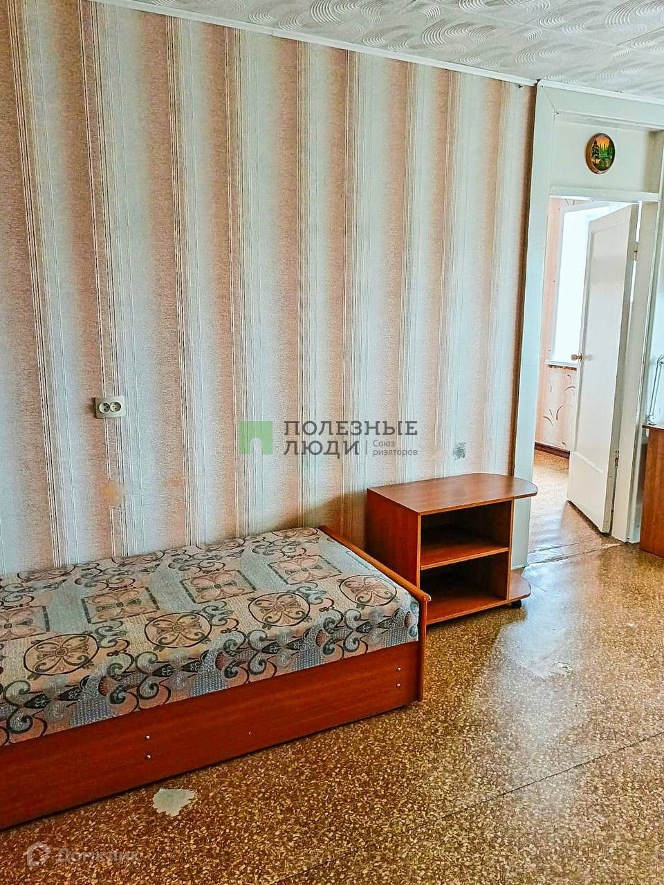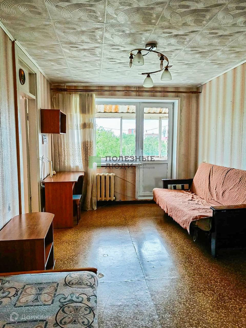 -Первая комната с двуспальным раскладывающимся диваном и односпальной кроватью. Есть рабочий стол и вместительный шкаф для хранения одежды. Открытый балкон без ремонта.