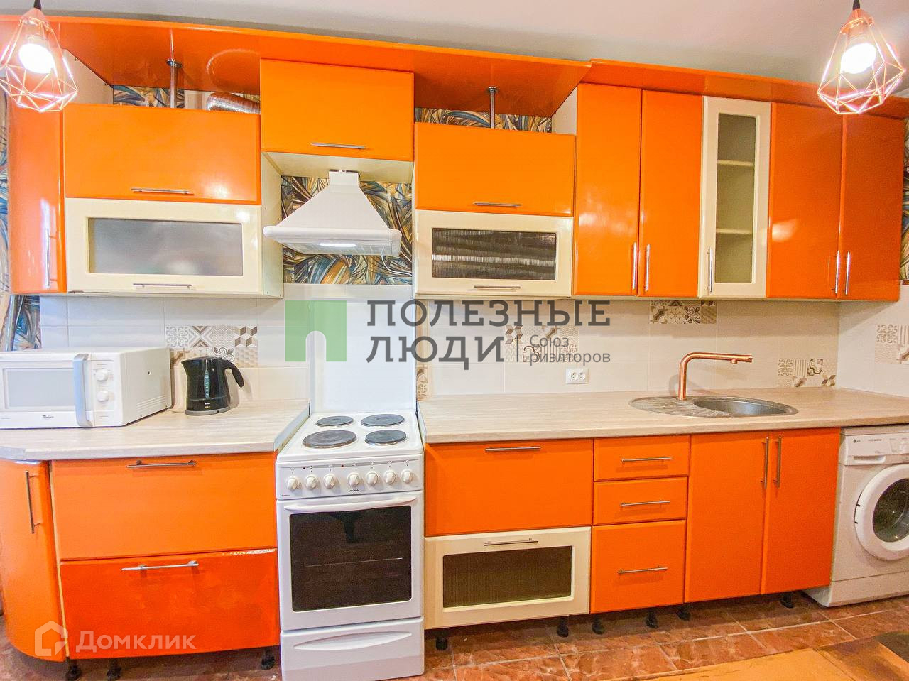 -Кухонная зона со всей необходимой техникой. (Холодильник, СВЧ-печь, духовой шкаф, вытяжка, электроплита)