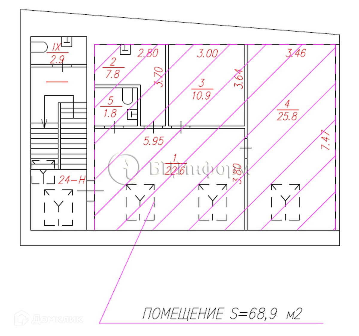 Общая площадь 68.9 м2