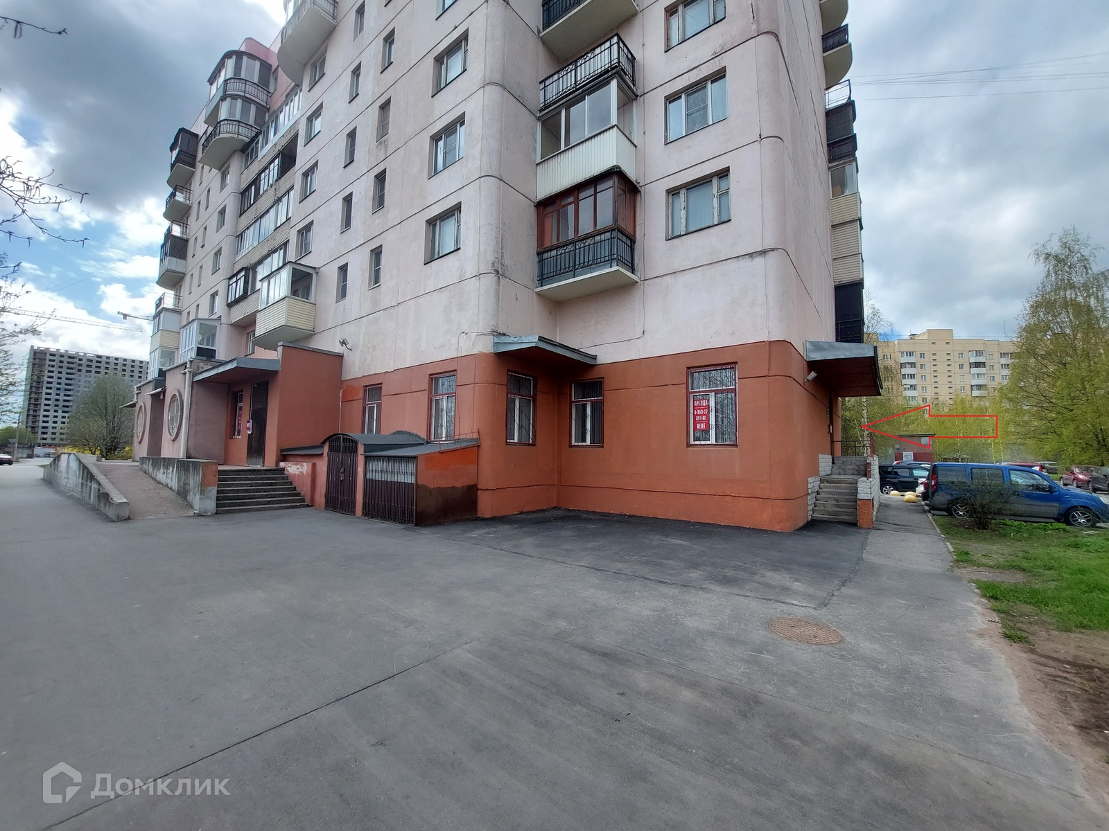 Помещение расположено в активном спальном районе, в 50 метрах оживленный перекресток (заезд в Кудрово), парковка у входа в помещение, в 100 метрах от дома торговый центр и др. места притяжения, обеспечивающие пешеходный трафик и