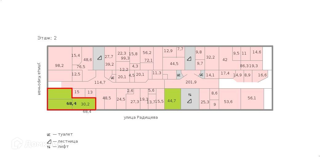 Предлагается в аренду по адресу ул. Радищева, д. 39, лит. Д, 68.4 кв.м.