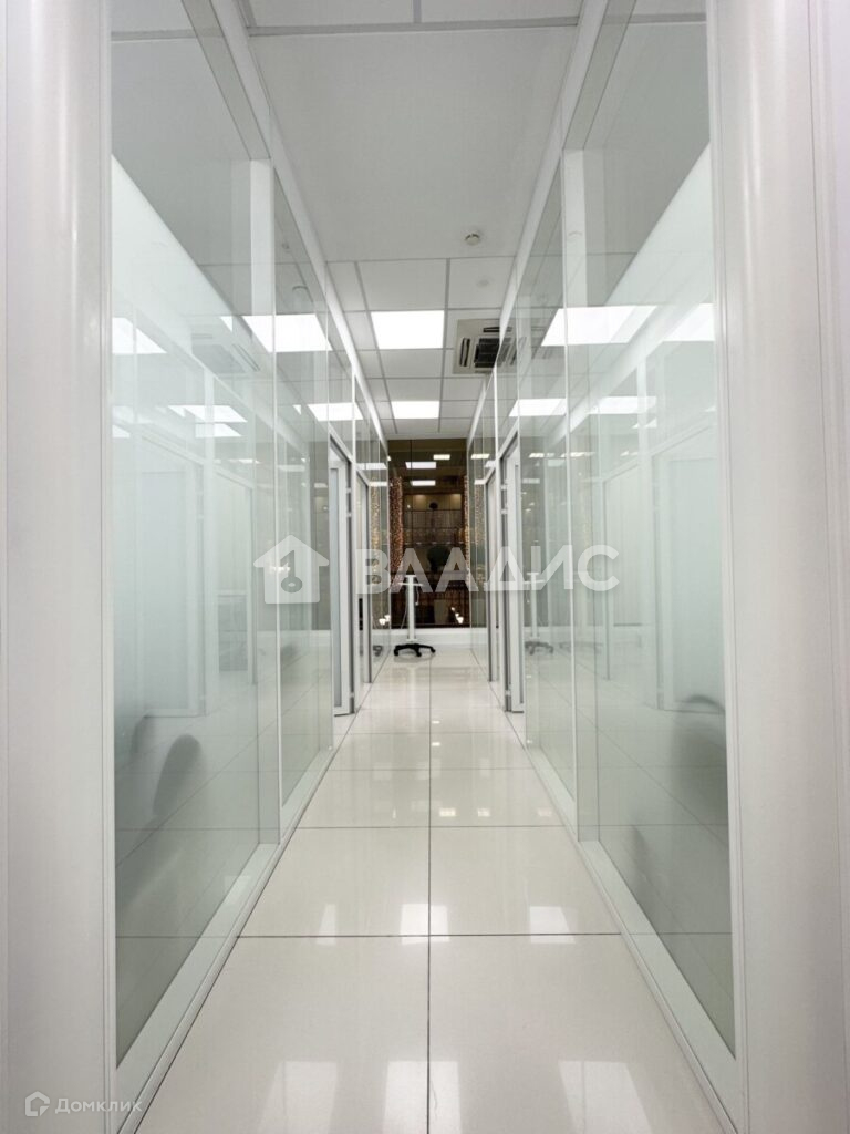 Несколько входов, окна выходят в атриум бизнес-центра.