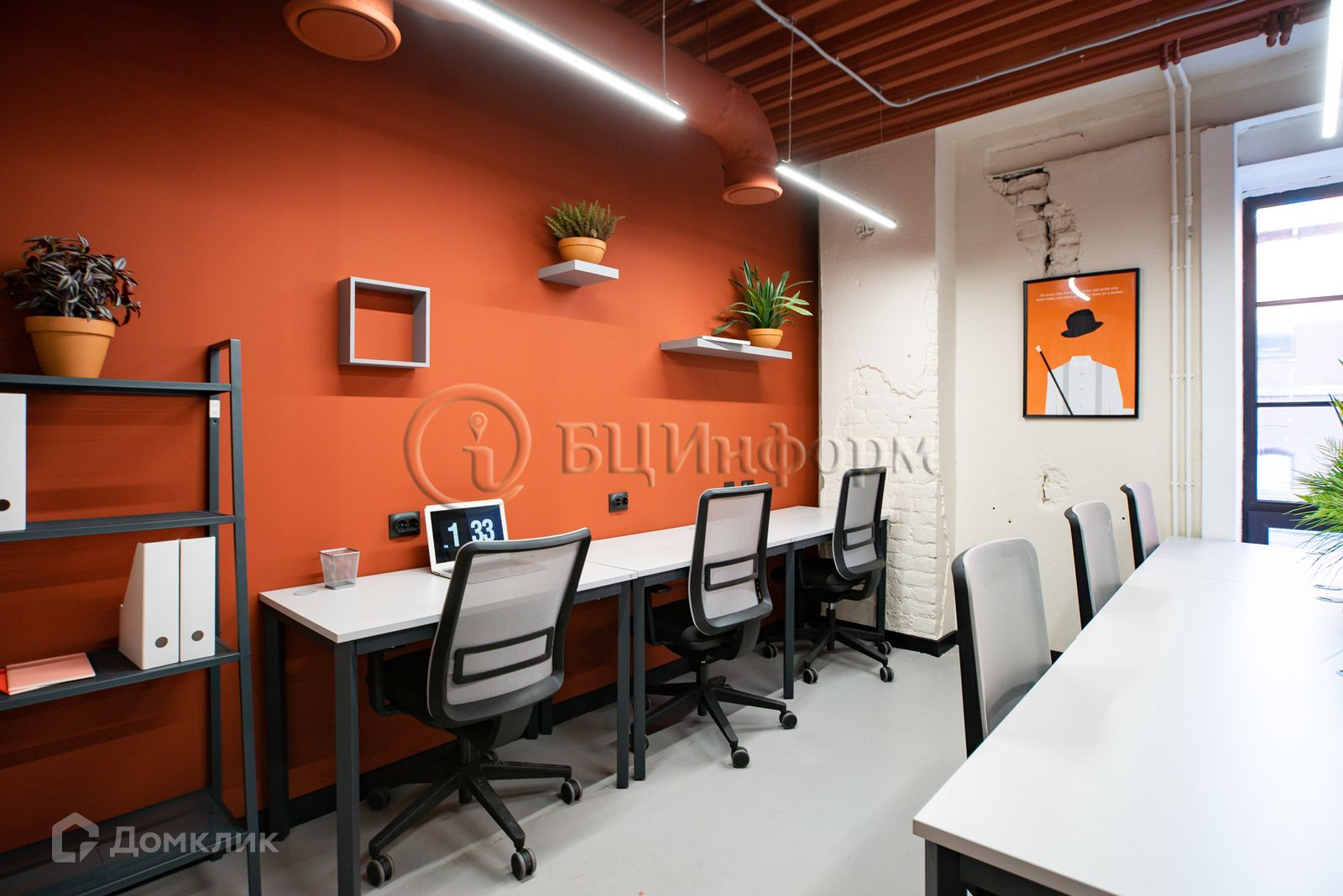 Помещение в отличном состоянии. Яркий дизайн, выполнена качественная отделка с элементами в стиле "Лофт": стены покраска/кирпич, потолок открытый/покраска. Зонирование пространства - стеклянными перегородками. Множество розеток и источников питания.