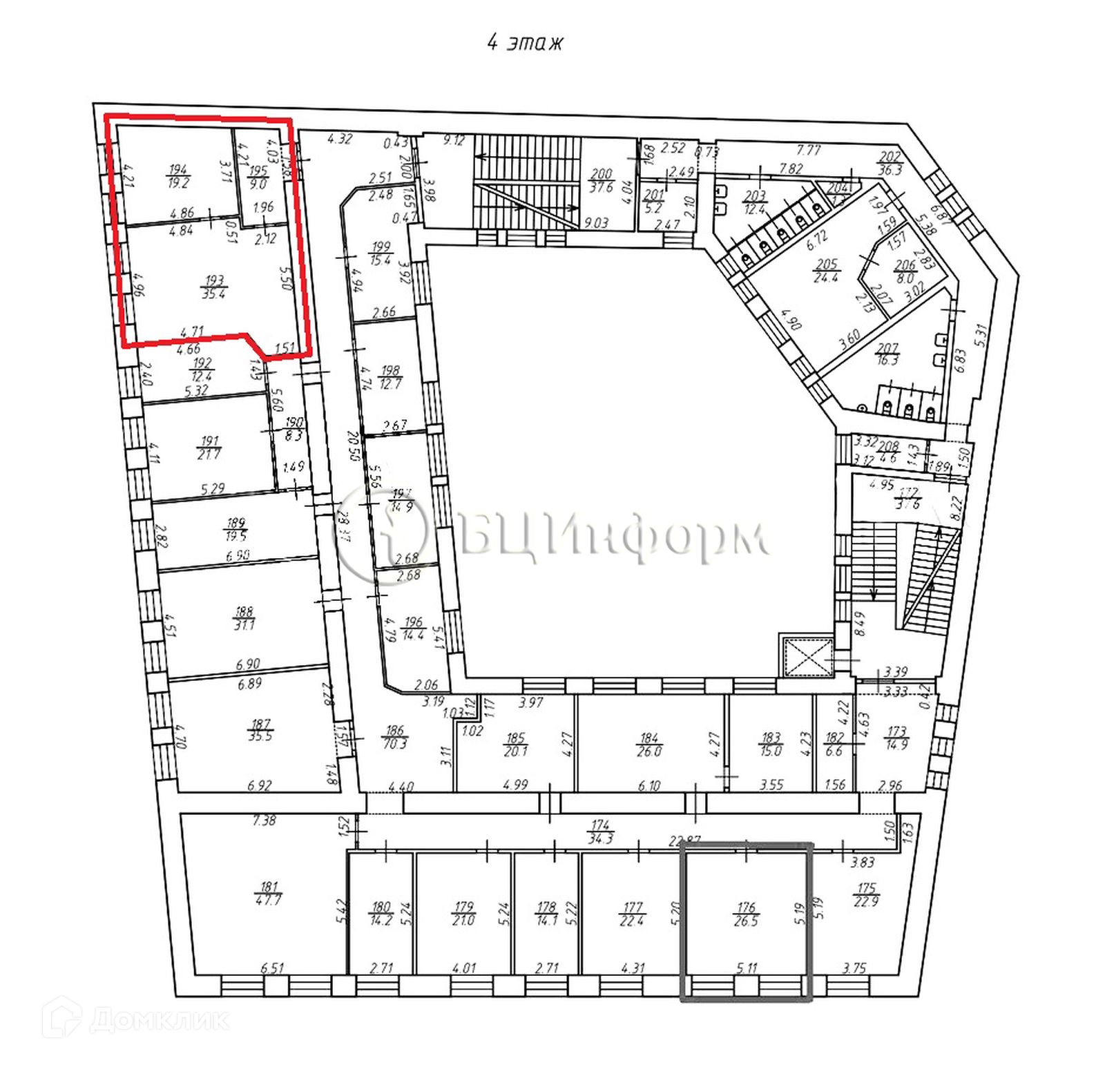 Общая площадь 15.4 м2