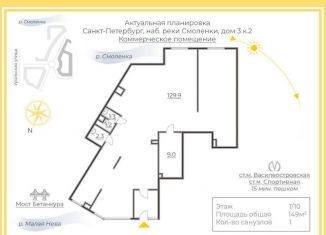 Сдаю в аренду помещение свободного назначения, 150 м2, набережная реки Смоленки, 3к2