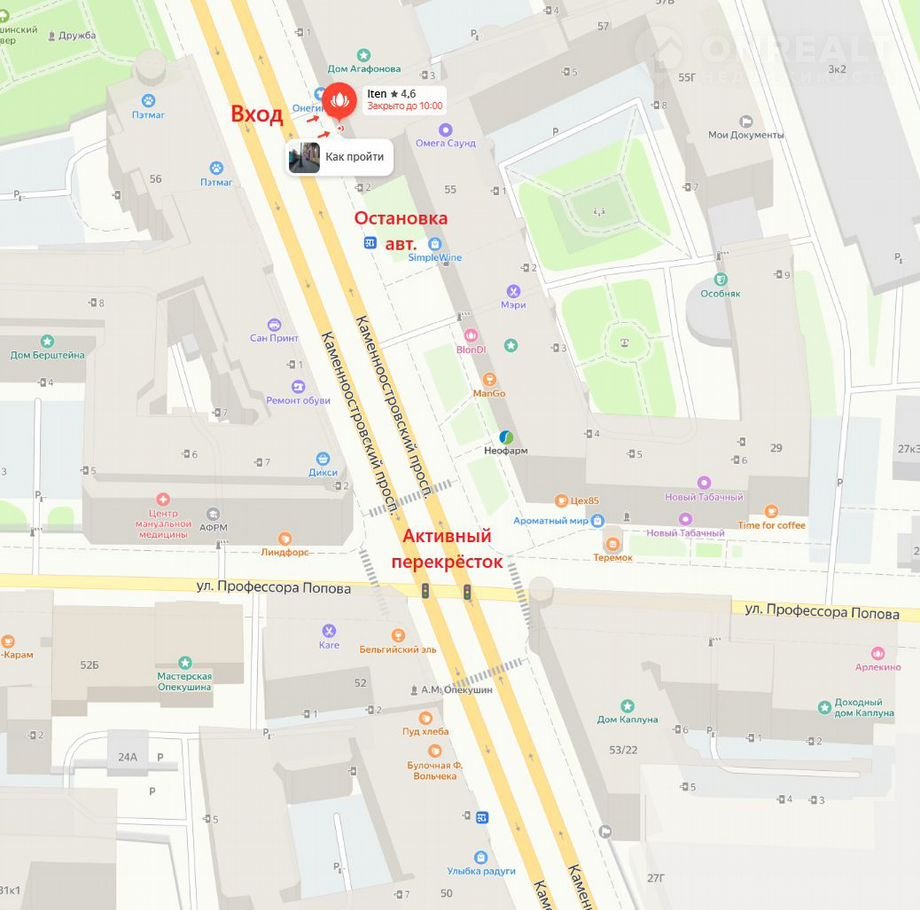 ТРАНСПОРТНАЯ ДОСТУПНОСТЬ: 10 минут пешком до станции метро Петрградская, напротив помещения расположена остановка общественного транспорта.