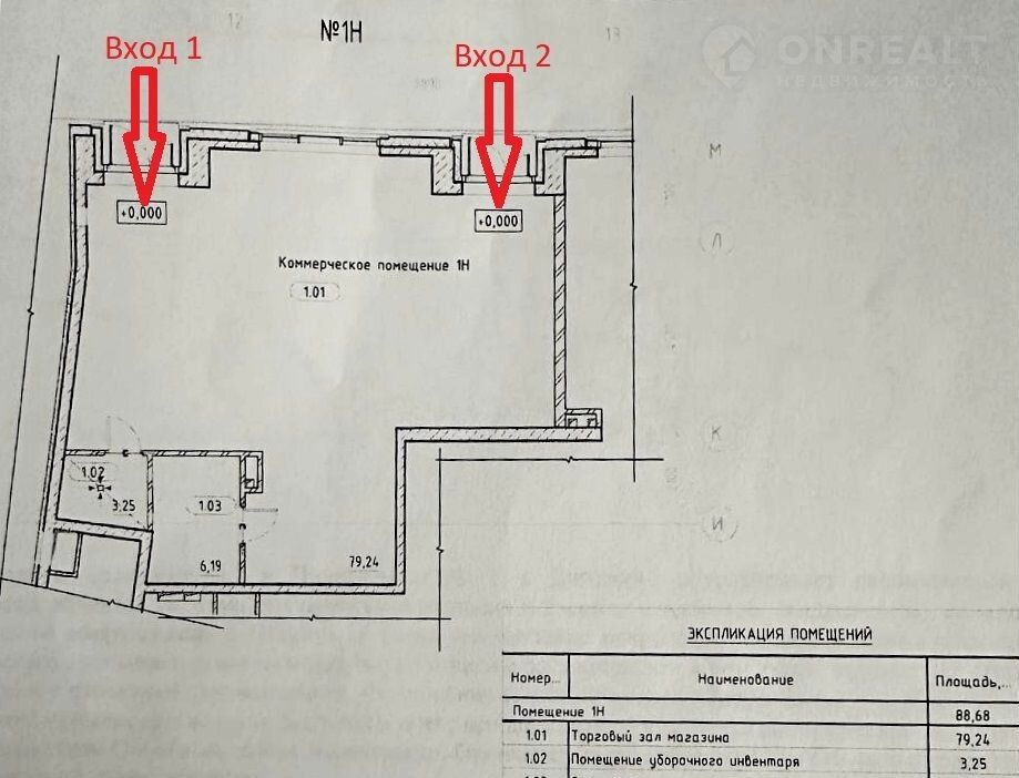 -1-й Этaж (высокий с панорамными окнами). Два отдельных входа с фасада (проспект Бакунина).