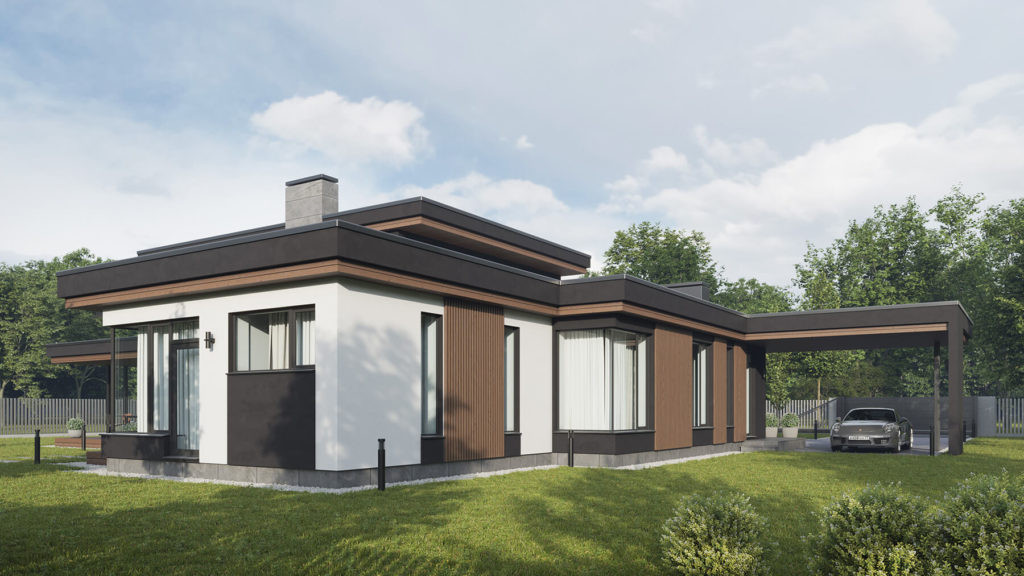 Строительная компания ООО "HI-TECH MONOLIT"  представляет одноэтажный дом со вторым светом HIT-C1-2. Габариты: 25,2 м х 20,1 м.