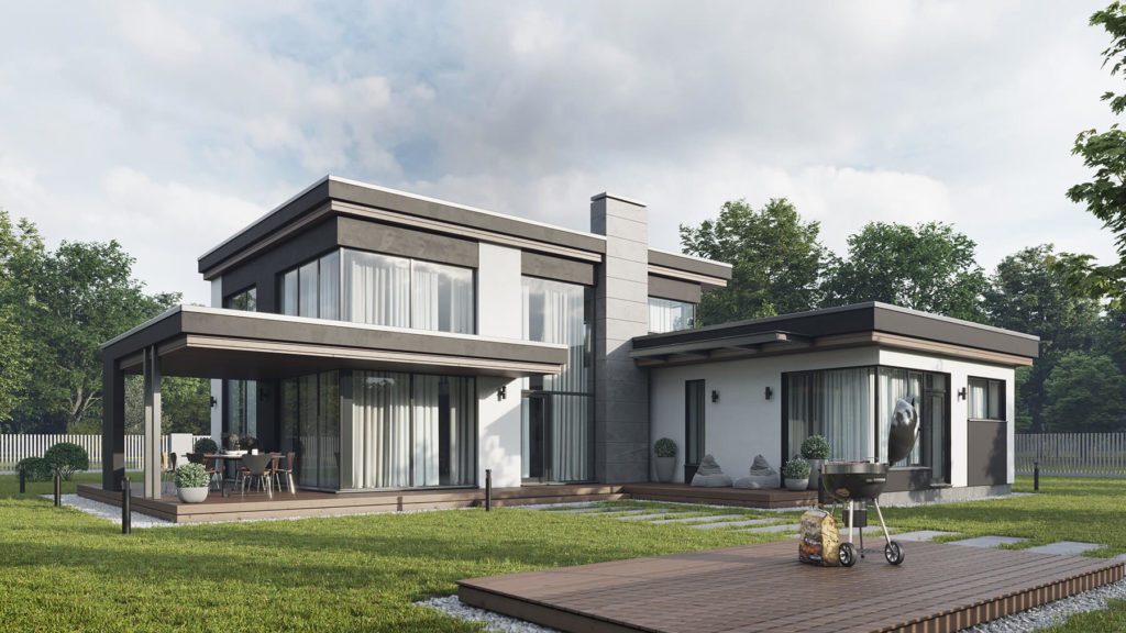 Главная концепция этого дома — современная стилизация Райт Хаус. Первый этаж включает в себя как общественную, так и личное внутреннее пространство. Кубическая форма помещений хранения, является главный зонирующим элементом внутреннего пространства.