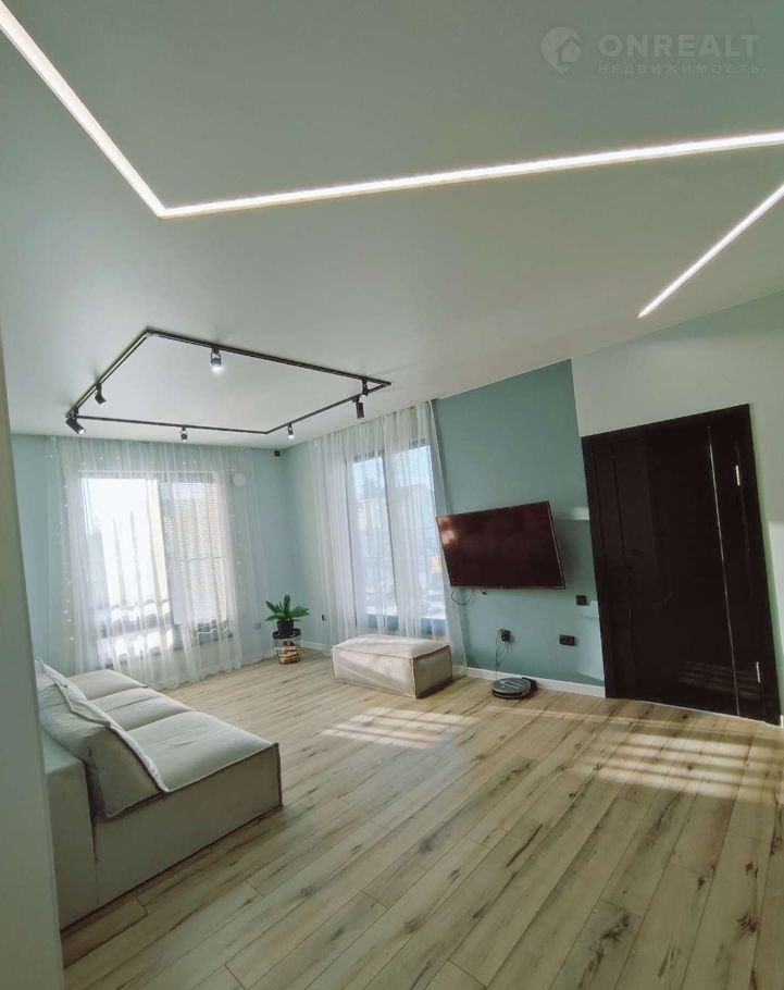 На первом этаже водяные теплые полы в бетонной стяжной 7 см. В качестве чистового покрытия ламинат.  Высота потолков 3 метра. На стенах гипсокартон подготовлен и покрашен.