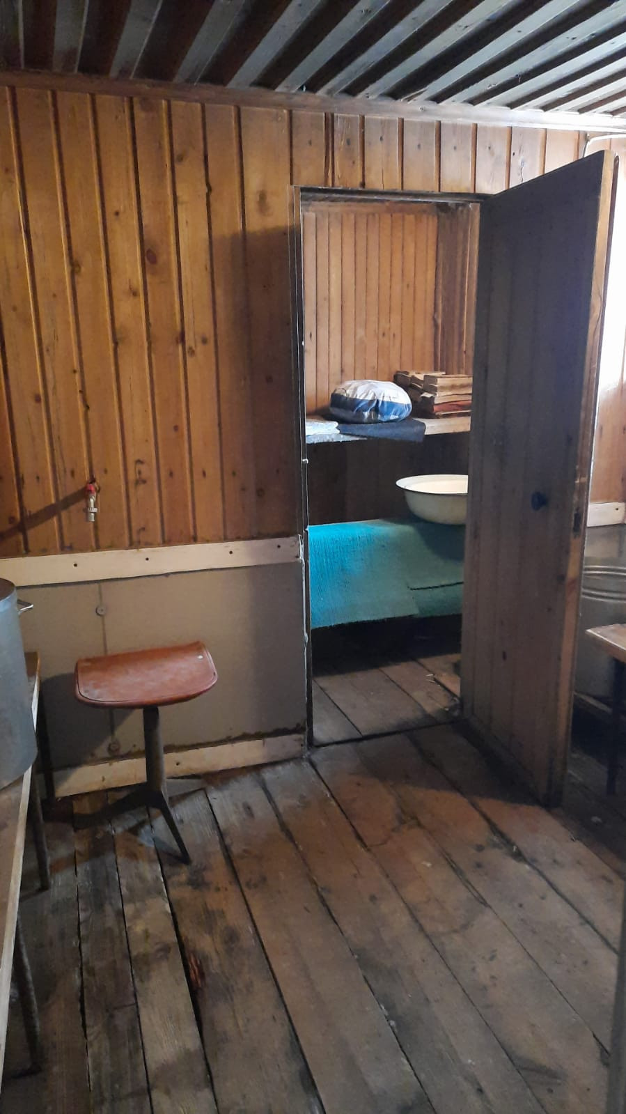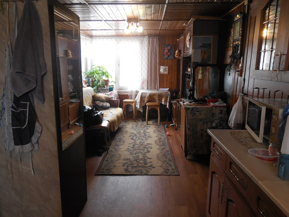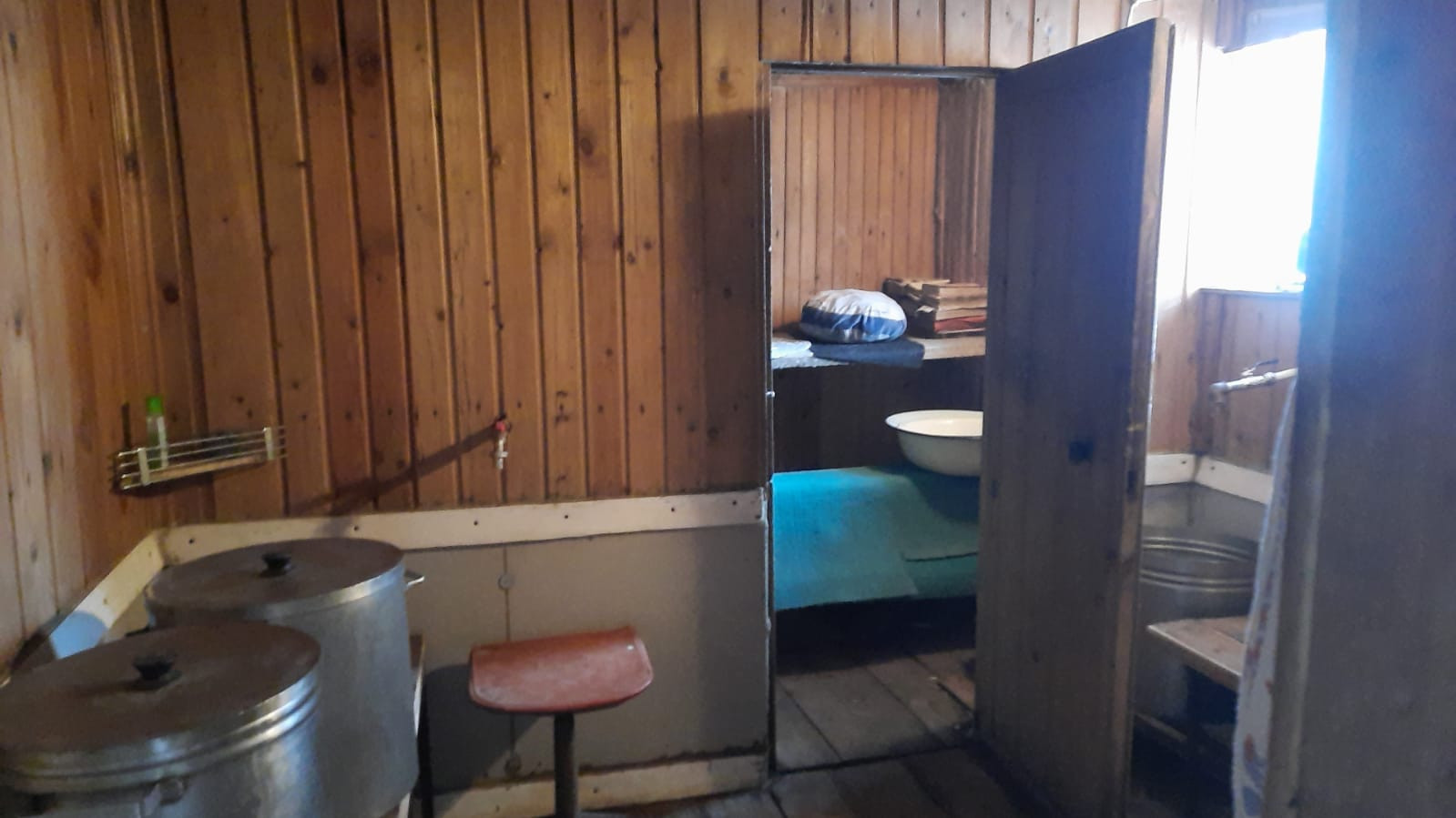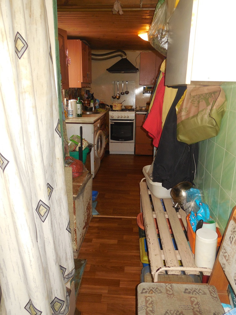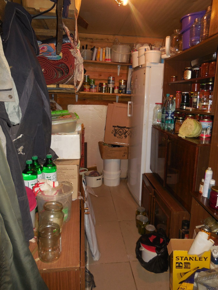 В доме на первом этаже: кухня-гостинная и две комнаты. Также в доме есть душевая кабинка и туалет. Есть холодная кладовая для хранения продуктов.