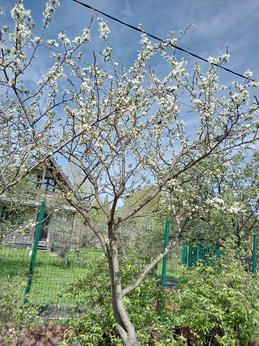 Ухоженный сад с фруктовыми деревьями: яблони, сливы, груши, вишни.