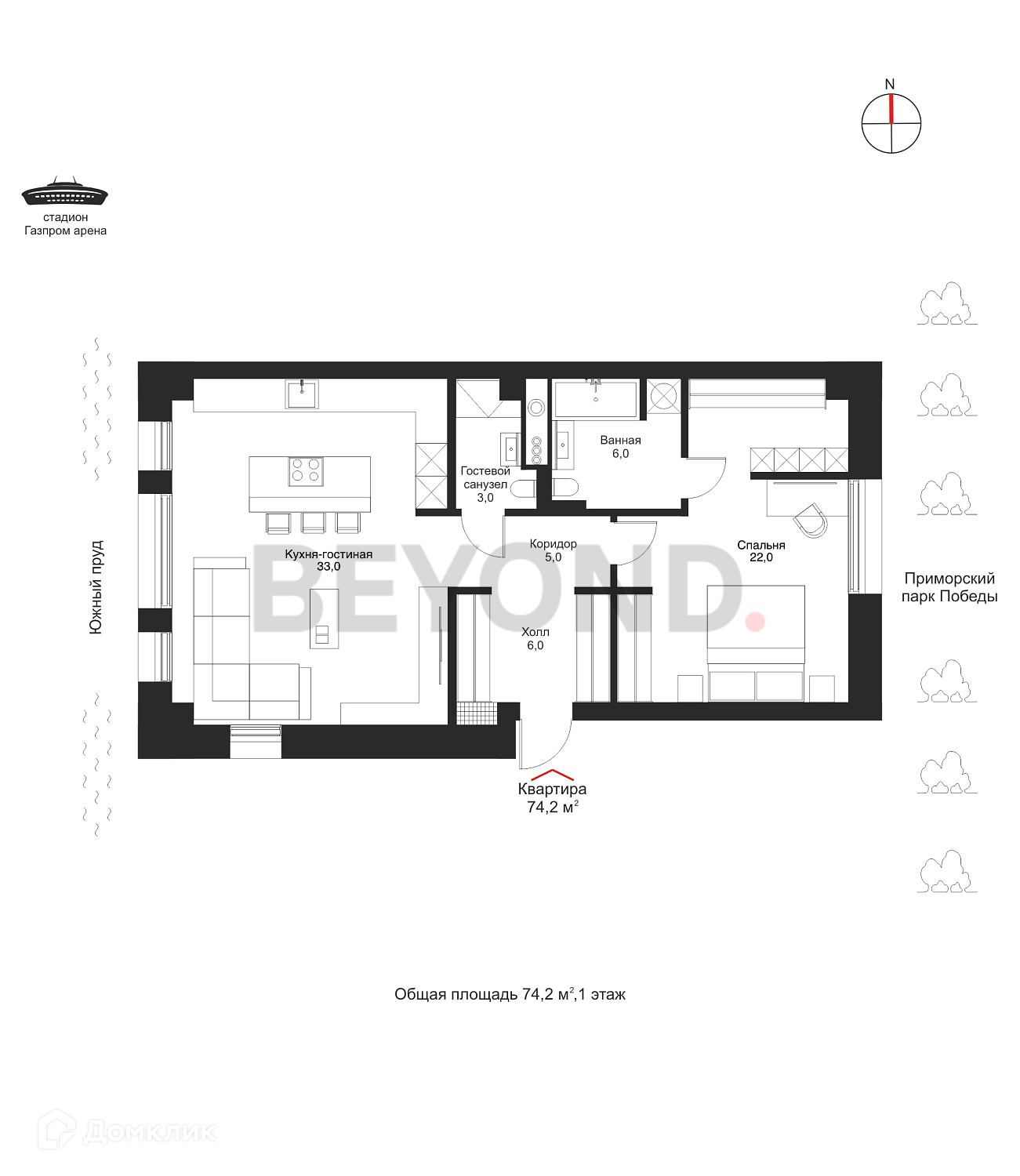 Общая площадь 74.2 м2