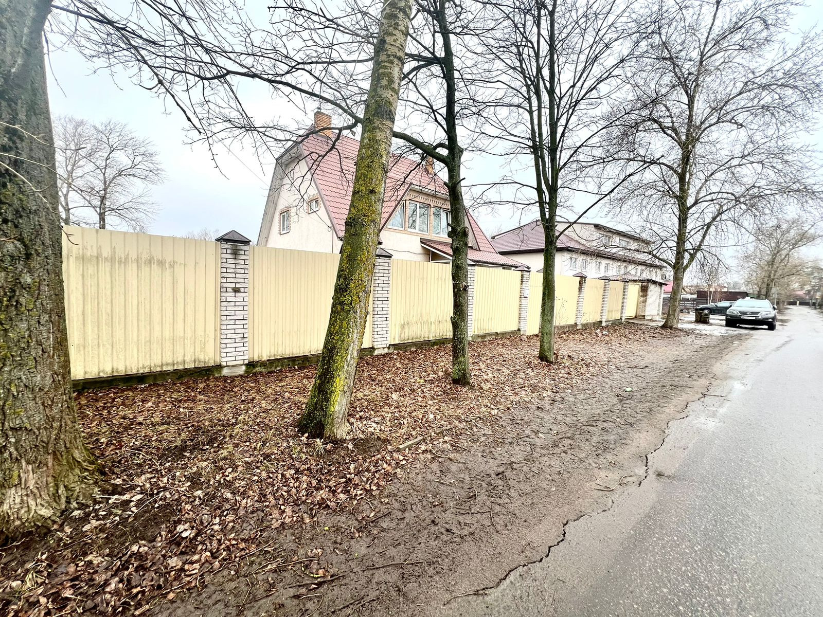 По периметру участка забор из профлиста установленный на ленту, а также имеются откатные ворота на пульте управления.