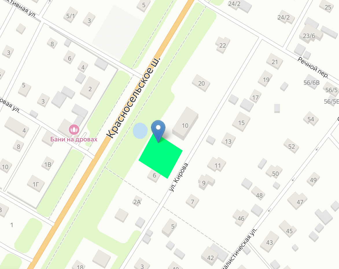 Участок подходит под коммерческие цели. Есть возможность присоединения 2,5 соток с выходом на Красносельское ш.