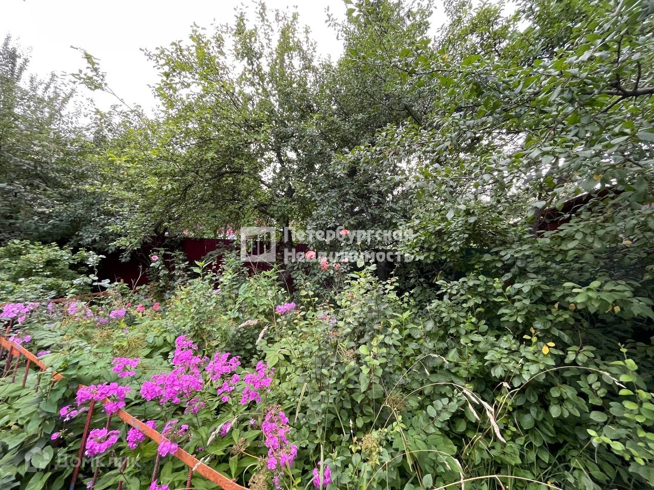 На участке растут плодовые деревья: яблони, груши, сливы.