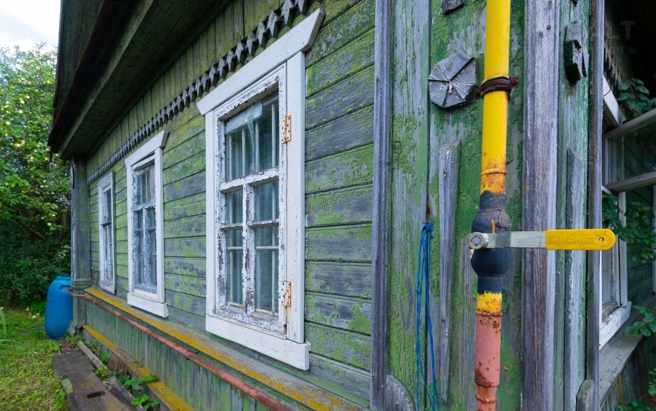 На участке находится зарегистрированный деревянный дом с баней. К дому подведен газ. Вдоль дороги проходит центральное водоснабжение.