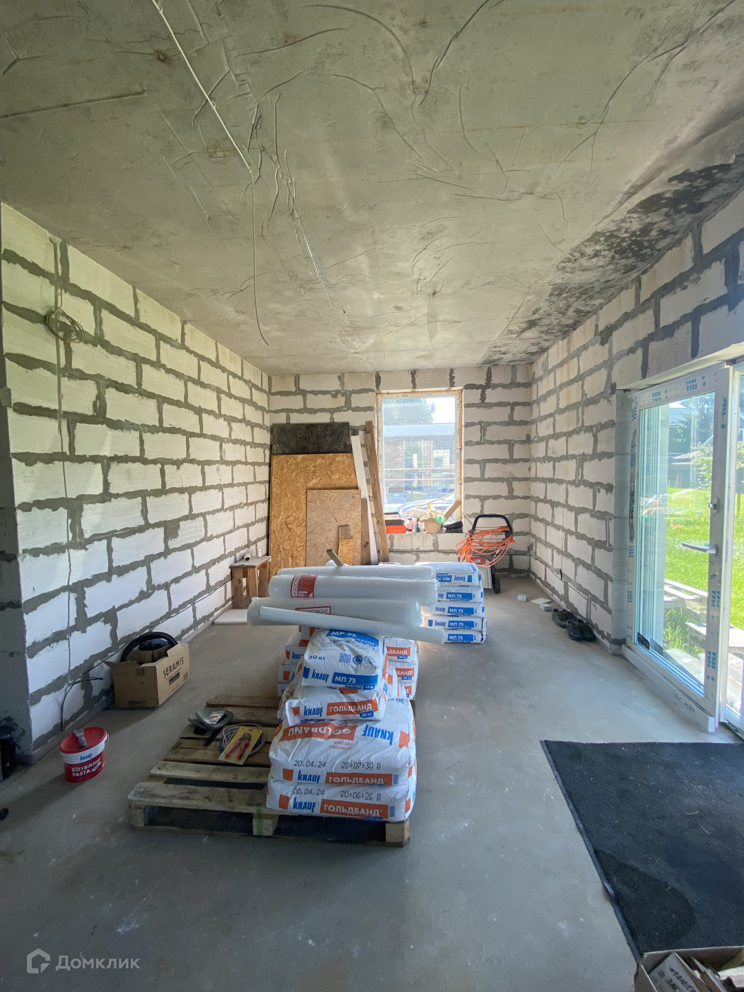 Полностью проведена разводка электрики, с выводами под розетки. Частично начата внутренняя предчистовая отделка. Планировка продумана, и подойдет как для большой семьи, так и для семейной пары, либо пары с ребенком. Кухня-гостиная, спальни, 2 сан.узла, котельная, гардеробная, 2 входа/выхода (один из гостиной, что позволит сделать террасу/патио)