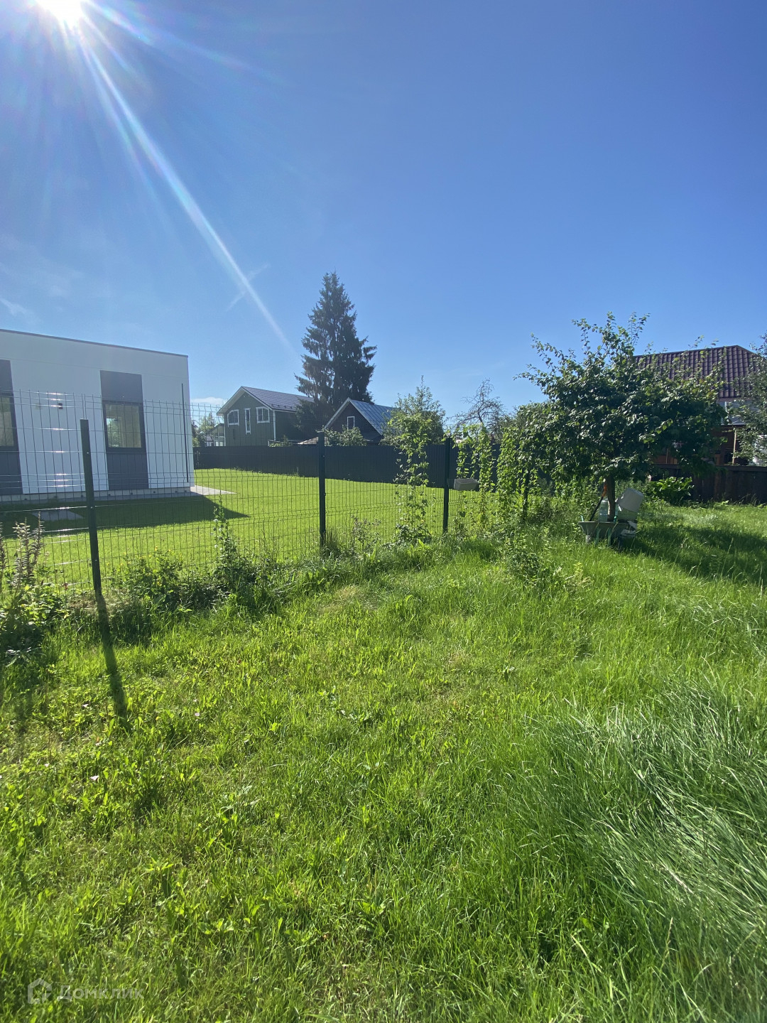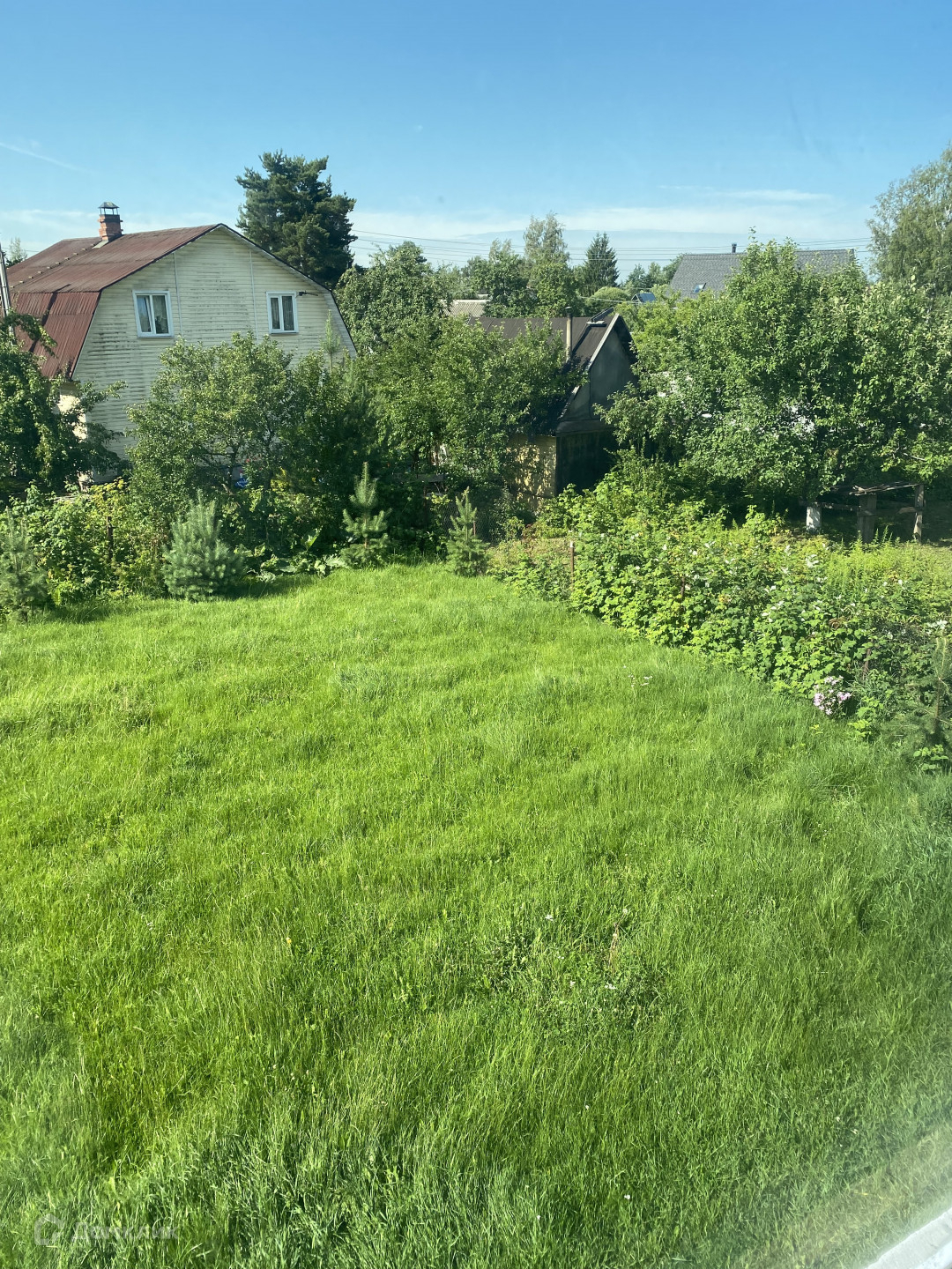 УЧАСТОК правильной формы, сухой, 6 соток, засеян газоном, по границе высажены маленькие сосны.