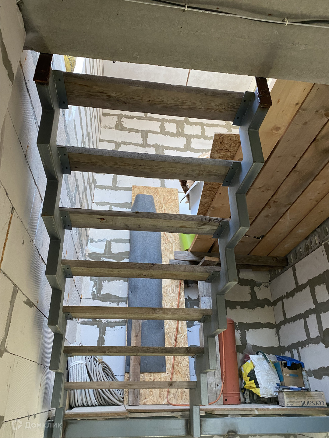Лестница бетонная, и для выхода на 3 ярус с выходом на крышу- металлическая.