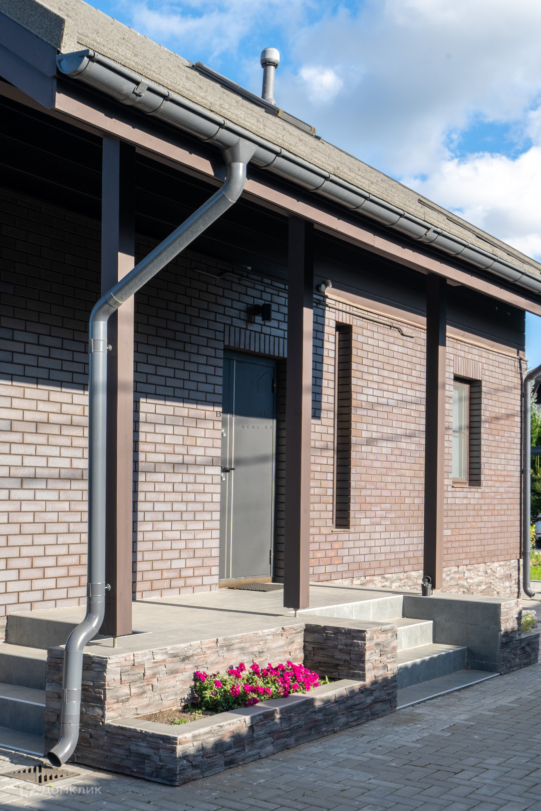 — Прочные строительные материалы (1 этаж газобетон АЕRОС D500 300мм, 2 этаж заводской каркас) и качественный фундамент (дом УШП 1м, баня УШП 50см), отделка клинкерной плиткой, композитная черепица Тilсоr.
