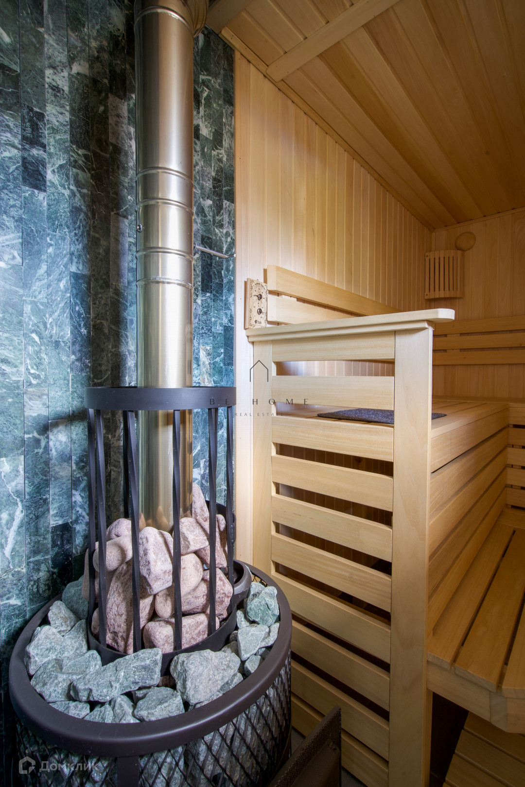 Основной дом: Построенный в 2017 году, дом прошел комплексную отделку по индивидуальному дизайн-проекту в 2021 году. Все работы, включая благоустройство участка, завершены в 2022 году. На первом этаже вас встретит просторная и светлая кухня-гостиная с панорамными окнами. Здесь же расположен кабинет, который можно использовать для организации гостевой спальни или иных целей, а также санузел с душем. Второй этаж включает две просторные спальни и гардеробную, которую можно переоборудовать под дополнительную спальню, если требуется. Высокие потолки до 4,8 м создают ощущение простора и легкости. Отопление первого этажа осуществляется с помощью теплых полов, а на втором этаже установлены биметаллические радиаторы.
