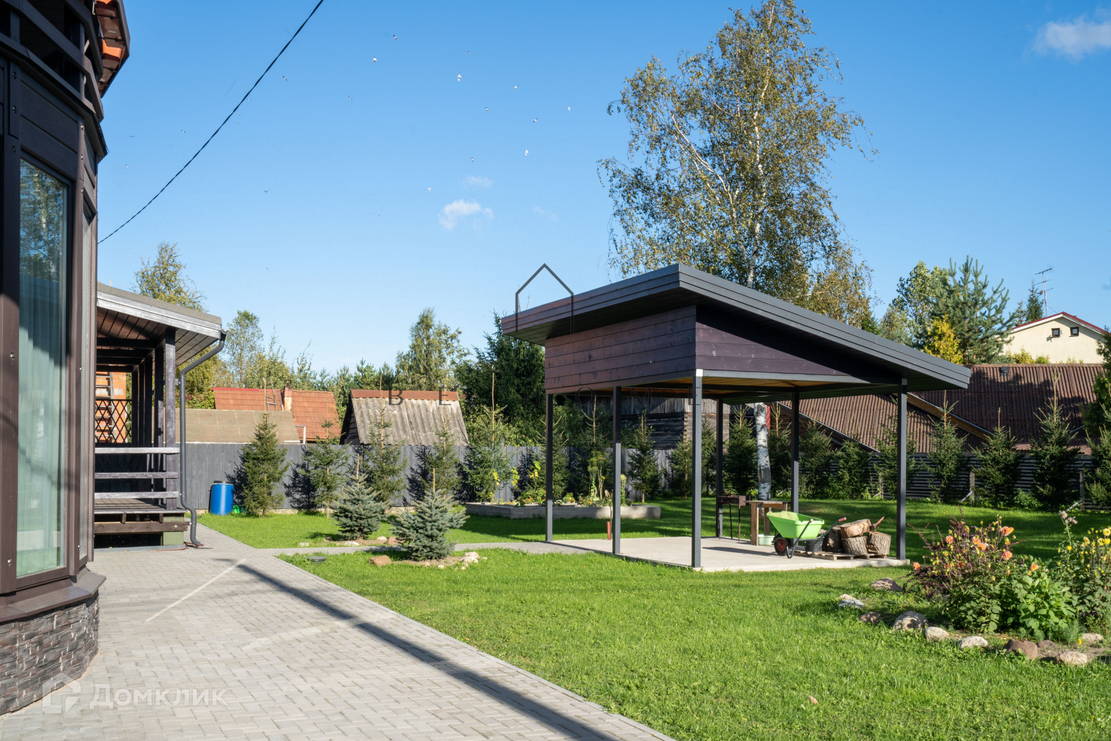 Участок и благоустройство: На территории участка выполнен дренаж и организована ливневка. Ландшафт оформлен с особой любовью: высажены хвойные и плодовые деревья, кустарники, что создает атмосферу уюта и природной гармонии. Вокруг дома выложена брусчатка (около 300 м²), также предусмотрена парковка под навесом и место под беседку. Забор на ленте, откатные ворота с электроприводом.