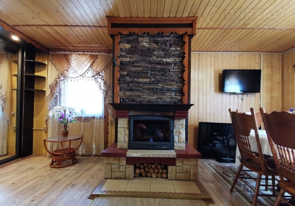 Дом обогревается камином и печкой на две комнаты на первом этаже, и электрическими обогревателями по всему дому.