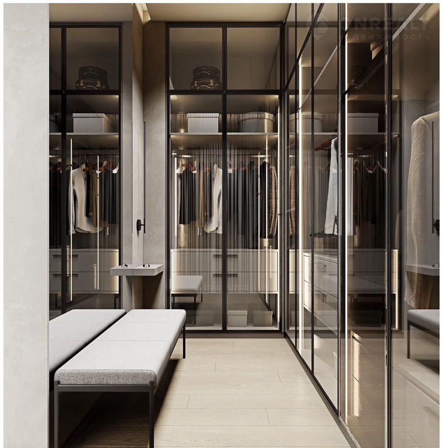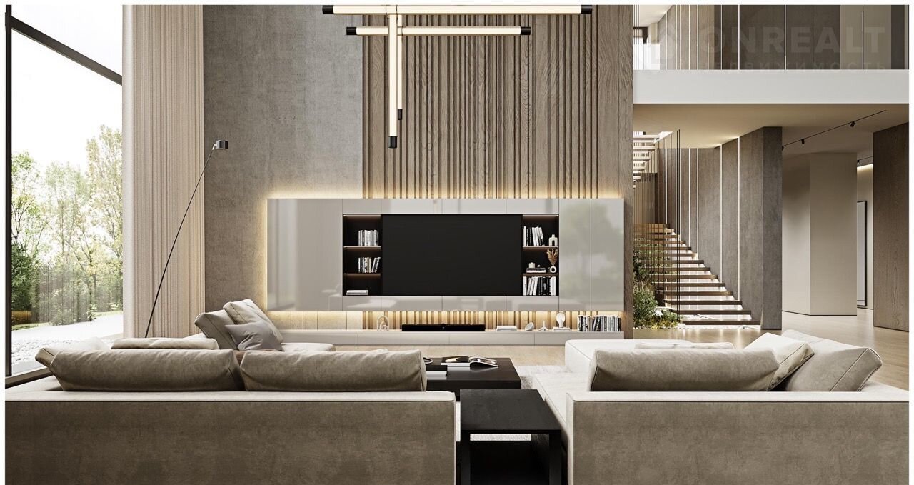 Дом построен по современному проекту. Огромные панорамные окна высотой 7 метров в кухне-гостиной создают ощущение простора. Высота потолков на первом этаже варьируется от 7 до 3 метров. В теплом контуре дома расположена панорамная беседка с настоящим мангалом с видом на Лахта Центр.