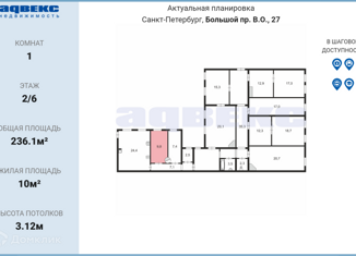 Продаю комнату, 236.1 м2, Большой проспект Васильевского острова, 27