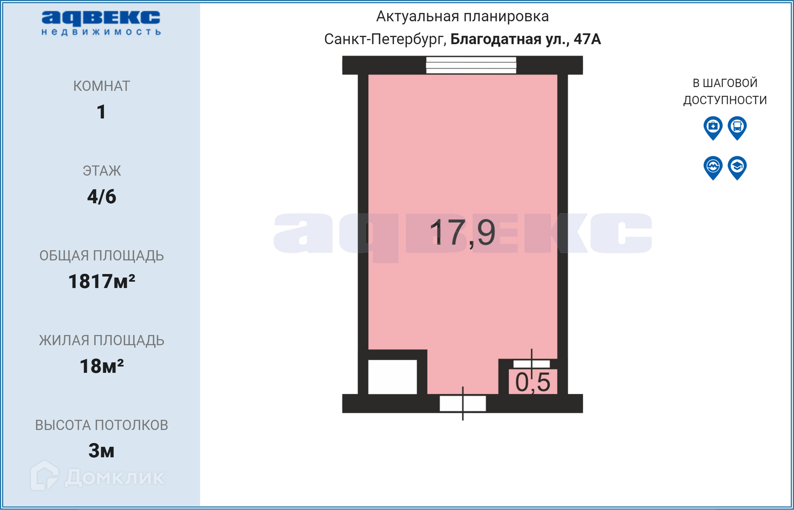 Комната, 800 м2, на продажу в Санкт-Петербурге, Благодатная улица, 47