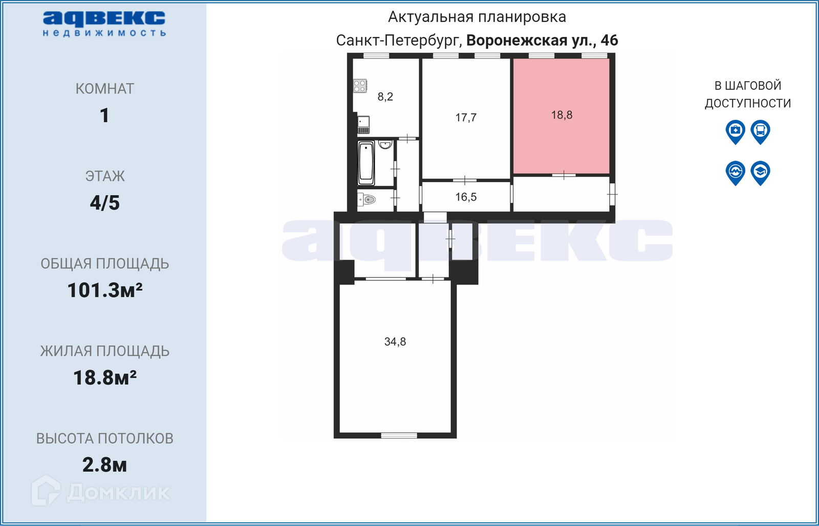 Комната, 101.3 м2, на продажу в Санкт-Петербурге, Воронежская улица, 46-48