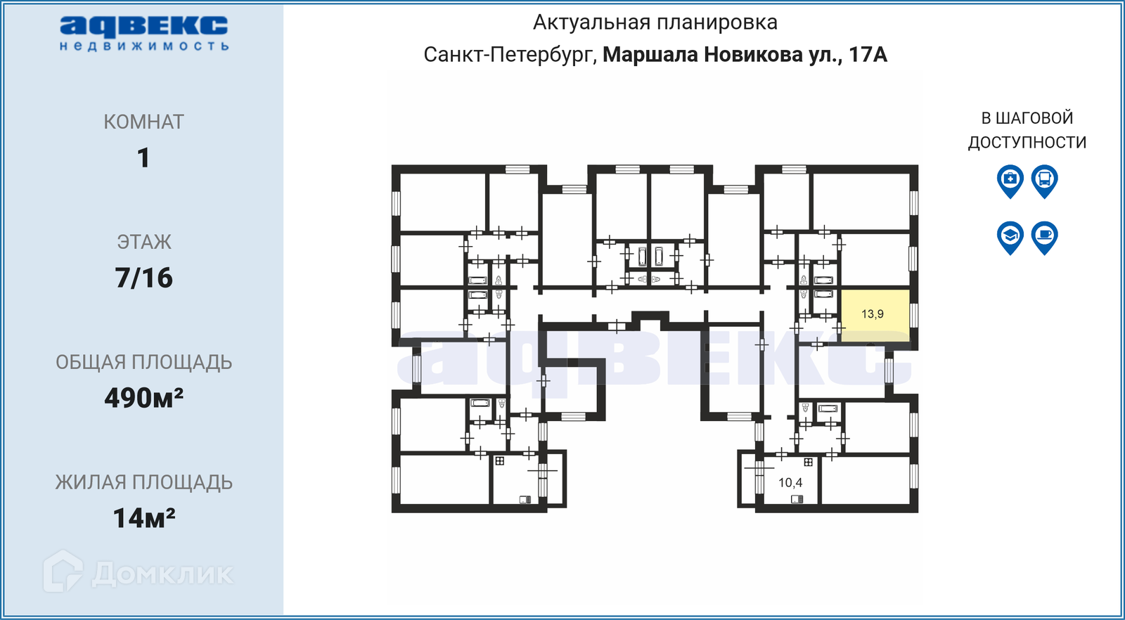 Комната, 490 м2, на продажу в Санкт-Петербурге, улица Маршала Новикова, 17