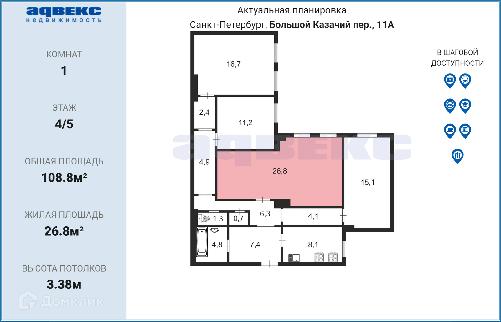 Общая площадь 108.8 м2