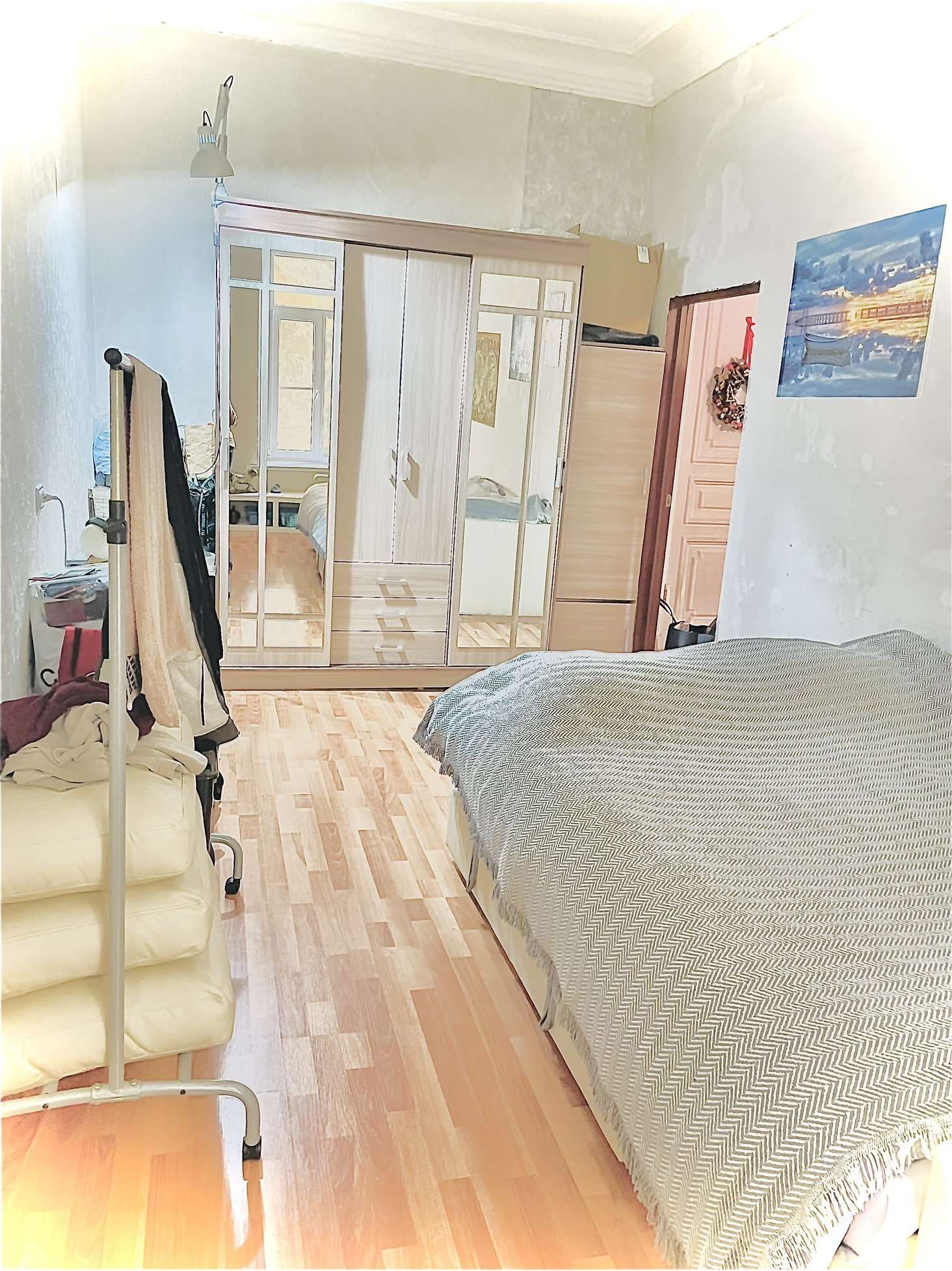 Общая площадь квартиры 158,8 м2., продается комната 31.4 м2, благодаря планировке и площади комнаты, получилось сделать полноценную однокомнатную квартиру, с кухней гостиной и спальней.