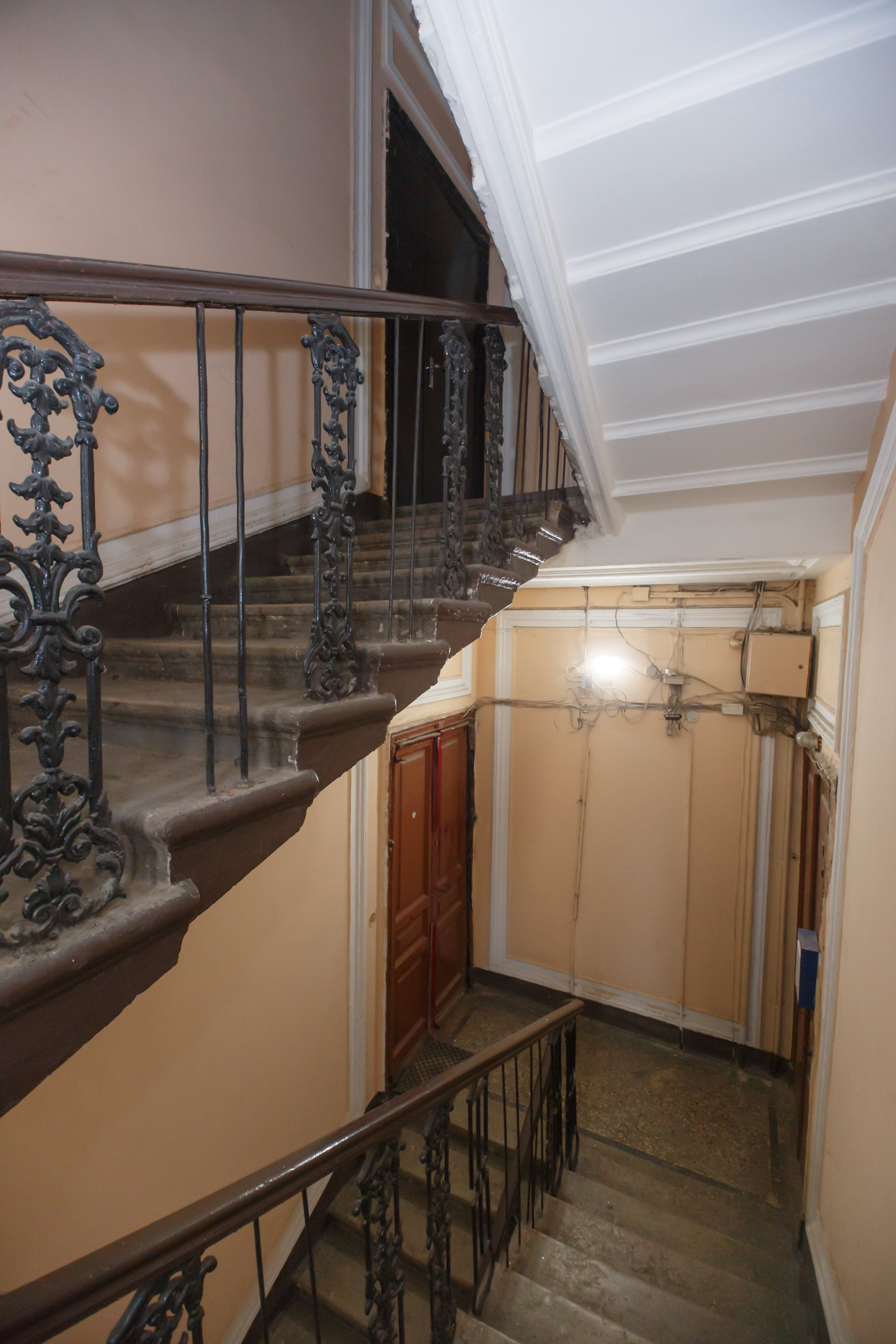 Парадная в хорошем состоянии. Один вход парадный с улицы Марата. Второй вход в квартиру – со двора. Респектабельные соседи. Есть лифт. Закрытый двор с парковкой.