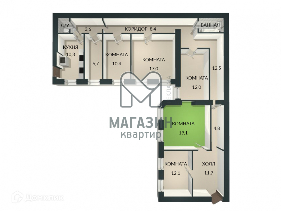 Просторная комната в малонаселенной квартире (соседи - мужчина и в другой комнате- женщина) 19.1 кв.м. подойдет для комфортного проживания как одного человека, так и пары.