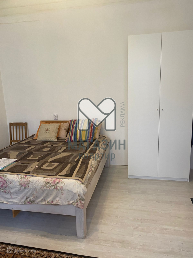 Новые полы - ламинат. Просторная двуспальная кровать позволит разместить гостя.