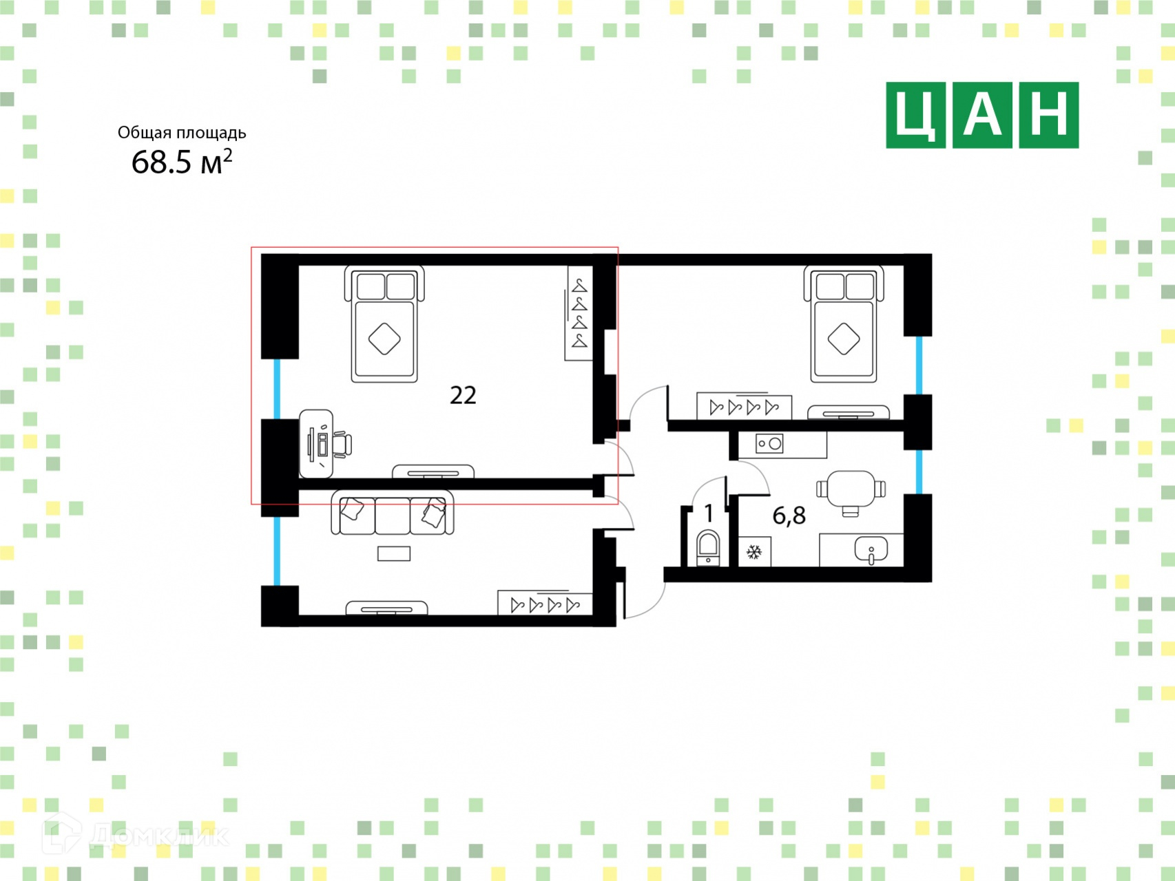 Общая площадь 68.5 м2